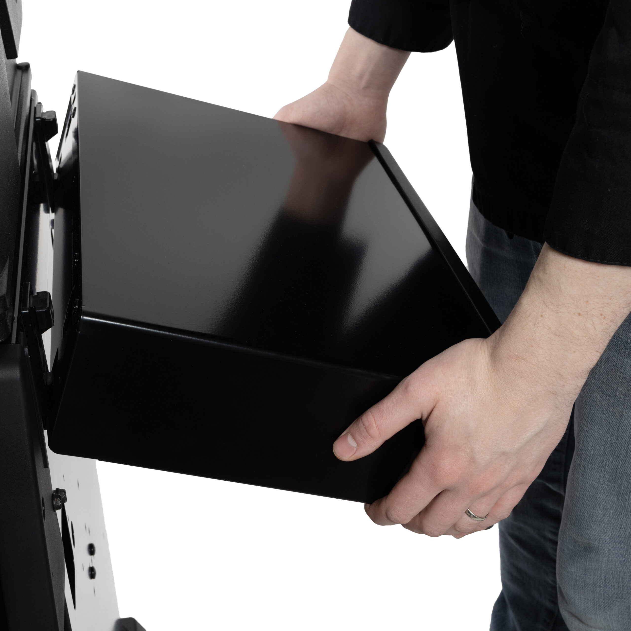 CABINET: Enclosed cabinet base with black powder coat cabinet doors